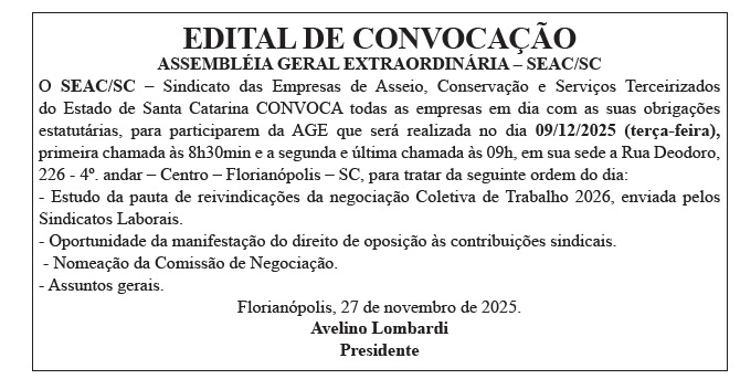 Edital de Convocação - AGE SEAC-SC